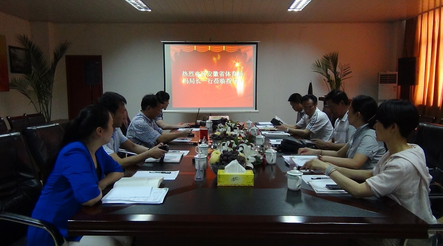 6月22日上午,安徽省体育局冯潮局长,竞技体育处处长刘晓辉、副处长刘弢等领导在百忙之中莅临文一企业考察指导,集团董事长周文育、工会主席周文锁等领导做了热情接待。