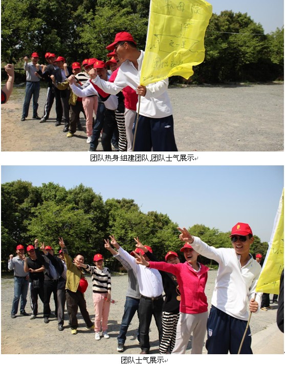 拓展训练活动主要分为团队热身、个人项目、团队项目、回顾总结四个部分组成,团队成员在团队活动中完成活动任务,通过活动,学习和解决问题、锻造团队,系统提升新员工的团队精神、应变能力、沟通能力、领导能力、计划能力、组织能力和协调能力。活动开始前,主训老师讲解拓展训练的历史,活动注意事项,分成5个组、选队长,起队名,文化,队歌,所有成员充分参与,组建团队,进行团队士气展示,六个项目分别由拓展教练分别辅导到位。