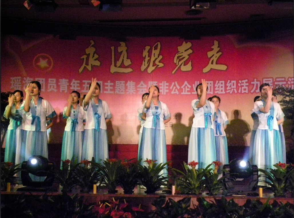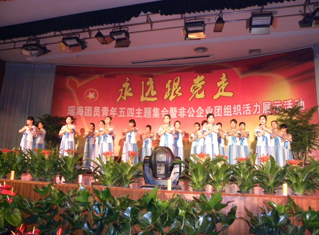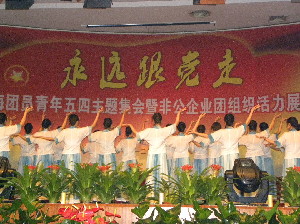 为纪念“五四”运动93周年,庆祝中国共青团成立90周年,重温共青团的光辉历程,承接新形势下共青团的神圣使命,进一步激发全区团员青年积极投身瑶海转型发展典范区建设的工作热情,5月3日上午,瑶海区“永远跟党走”团员青年五四主题集会暨非公企业团组织活力展示活动在瑶海区政府礼堂隆重举行,现场300余名青年团员重温入团誓词,共同参与精彩的文艺演出,展示团员青年的风采。文一企业精心编排准备的舞蹈《跪羊图》入选本次展示活动,感人肺腑的词曲,优美的舞姿博得了台下观众的热烈掌声。