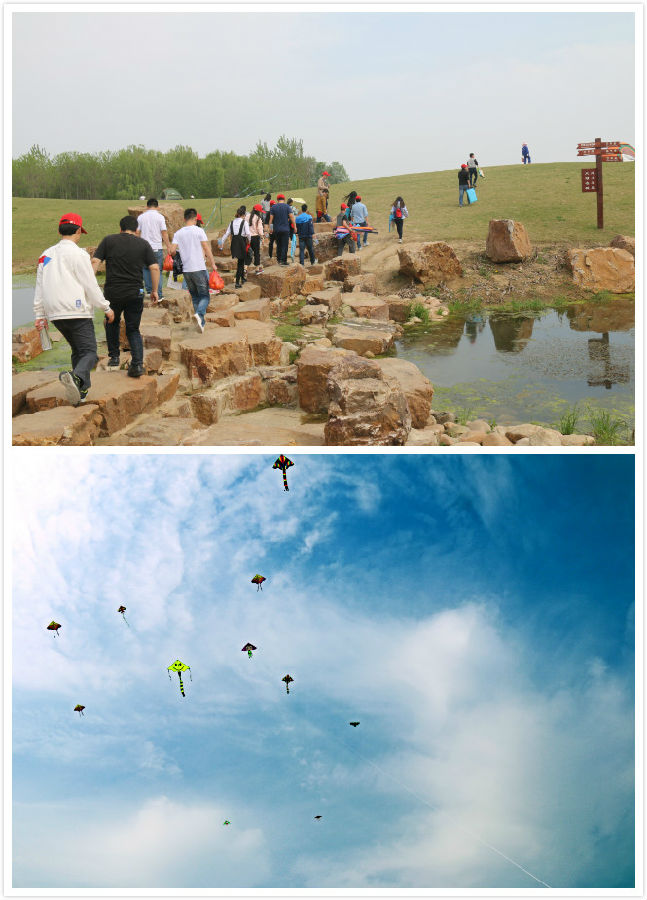 活动第一站到达享有城市“绿肺”的国家级滨湖湿地公园。观光车满载欢声笑语,沿途风光无限:开始结角的金黄油菜花、遍地的粉红色落英、翠绿的杨树林,还有红色的森林小火车……春末的气息让大家放松疲惫的身心,尽情感受自然的魅力。在游览了整个园区之后,大家合影留念并出发前往长临河古镇。
