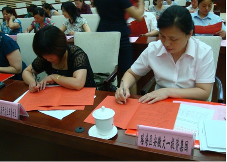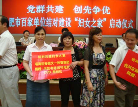 会议由市妇女联副主席王兴梅主持,市委副书记熊建辉、省妇女联合会党组成员副主席高莉分别作了热情洋溢的讲话,结对共建的双方代表分别表了决心,参加会议的138家结对单位代表和村、社区妇女之家的代表分别签订了结对共建“妇女之家”协议书。安徽文一投资集团结对单位是瑶海区龙岗开发区王岗社区“妇女之家”,结对物品为照相机、美腰机、书籍和书柜等。会议要求通过结对共建加强对广大妇女群众的教育引导,激发她们参与共建活动的主动性和积极性,充分发挥结对单位的政治优势、思想优势和组织优势,全面加强和帮助村、社区“妇女之家”思想、组织、作风和制度建设;了解妇女身心健康发展,让妇女感受到“家”的贴心与温暖。通过共建使“妇女之家”达到组织建全、工作规范、服务到位作用明显、妇女信赖的目标,使“妇女之家”切实成为宣传政策的阵地、传播知识的课堂、传递信息的纽带、联系和服务群众的窗口、展示妇女风采的平台。