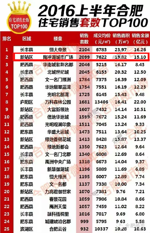 ??此外,文一地产以突出的销售业绩排名2016上半年合肥房企住宅销售金额榜首位,领跑合肥楼市。其中,文一·陶冲湖城市广场项目以2099套销售量排名合肥九大区住宅销售榜首位。????