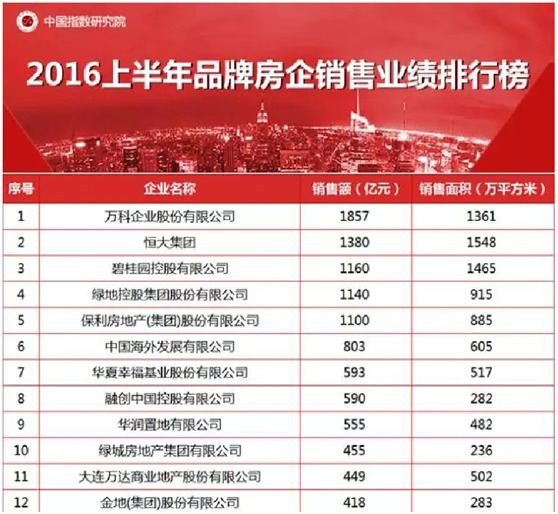 7月1日,中国指数研究院发布《2016年上半年中国房地产企业销售TOP100》排行榜,文一地产以住宅销售金额128亿元,销售面积113万平方米分别位居第54位、40位。??