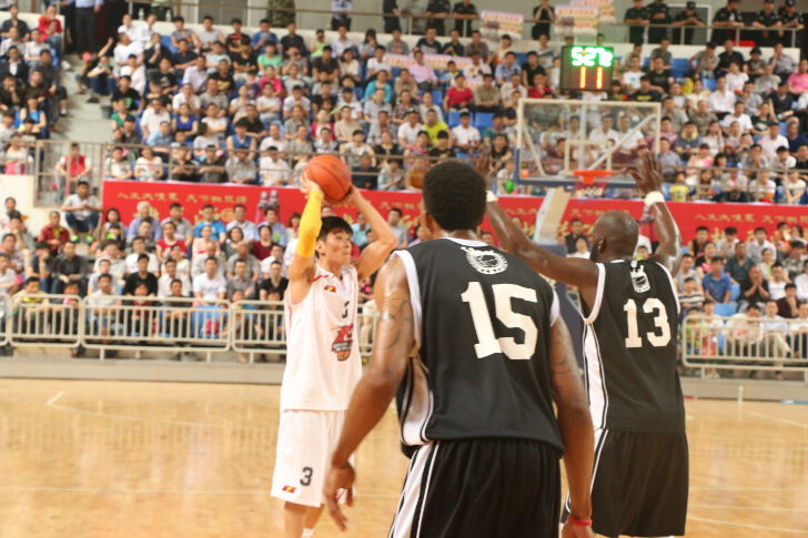 下半场比赛开始后,文一男篮在防守端突然发力,李骏在防守端以一个排球比赛中标准的拦网式动作将对手的篮球成功抢断,就在此时,张勇已经心领神会的跑到前场,一个跨越大半场的长传之后,张勇轻松上篮得手。由于本节比赛海军上将队外线全开,因此文一男篮依旧落后对手4分结束第三节。