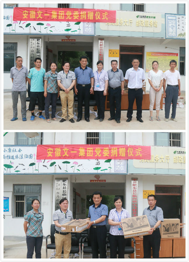 6月24日上午,文一集团党委成员一行在党委书记韦存华,党委副书记、集团副总裁朱红敏的带领下前往肥东县长临河镇白马山行政村,为村委会捐赠电脑、办公桌椅、会议桌椅等价值两万余元的办公设备。白马山行政村村委会主任对文一集团党委长期以来支持村里多项工作表示由衷的感谢。韦存华书记表示,马上就要到党的生日,文一集团党委在集团董事长的支持下,能为周边乡镇做出贡献是文一的社会责任。最后,白马山行政村村民与村委会工作人员争先与党委成员合影留念。
