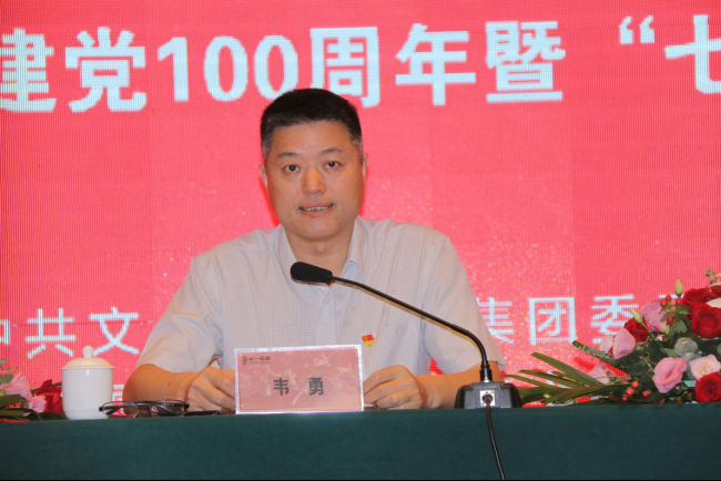 集团党委书记韦勇在会上发表了重要讲话。韦书记简要回顾了我们党百年发展历程和奋斗经验,阐述了开展纪念建党百年华诞的重大意义,介绍了文一集团经营发展现状,并从坚定理想信念、坚持强基固本、坚守初心使命三个方面强调,今后要把政治思想筑得更牢,把党的建设抓得更好,把本职工作做得更实,激励广大党员要不忘初心使命,牢记责任担当,传承红色基因,为党和社会事业进步奋发有为,为文一企业发展做出更大的贡献。