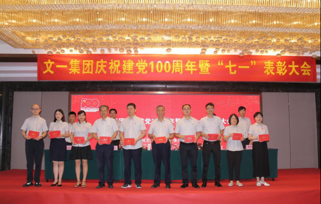 6月26日上午,文一集团党委隆重召开庆祝建党100周年暨“七一”表彰大会,回顾建党百年历程,表彰先进典型。集团党委班子成员、党员高管、各支部全体党员、入党积极分子等200余人参加会议。会议由集团党委副书记沙先知主持。