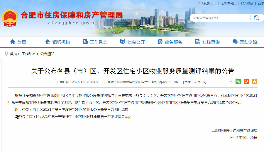 本次排名主要依据由各县(市)区、开发区物业管理主管部门委托第三方机构,对辖区住宅小区物业服务进行综合评价。并将所有小区物管单位的测评得分按照列举问题的方式从高到低进行排名,由合肥市住房保障和房产管理局统一发布。
