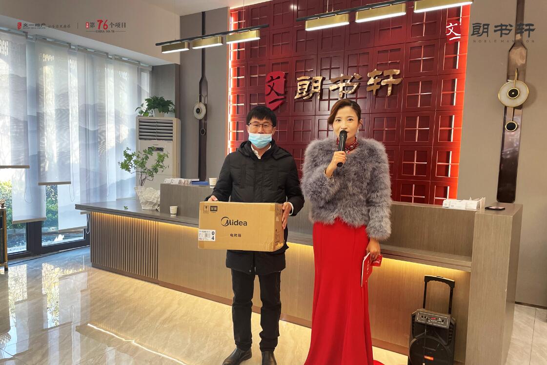 除了视觉上的美好体验,此次营销中心开放还为来宾准备了抽奖环节,在场的“幸运锦鲤”纷纷获得项目精心准备的包河酒、电烤箱、小罐茶、杂粮礼盒等惊喜礼品。当日来访嘉宾,也收到了文一·朗书轩准备的心意礼品。