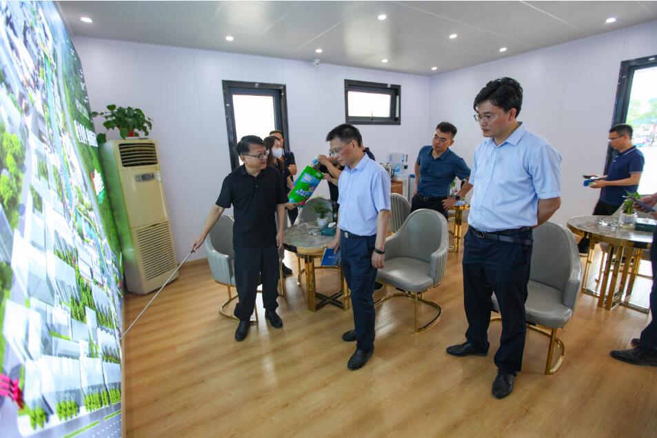 7月4日下午,合肥市瑶海区委书记陆勤山,区委副书记、区长童友好,区委常委、区委办主任黄贺,区委常委、龙岗综合经济开发区党工委书记丁守保,区农林水务局局长岳刚,区园林绿化管理中心主任陈浩,区国资公司总经理刘震生一行莅临文一时埠里项目调研考察。文一集团董事长周文育,执行总裁、时埠里项目公司总经理宁世明,建设集团总裁朱家斌,房地产集团副总裁石云志,时埠里项目公司负责人等全程陪同考察调研。