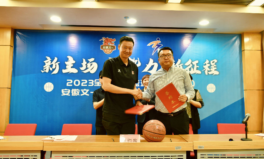 在签约仪式上,安徽文一篮球俱乐部董事长、总经理兼主教练郑武和合肥体育产业投资有限公司总经理杨福运代表双方现场签约。此次双方合作为期三年,围绕联赛主场这个核心,在商务运营、市场开拓、文创联名等相关领域展开全方位深度合作。