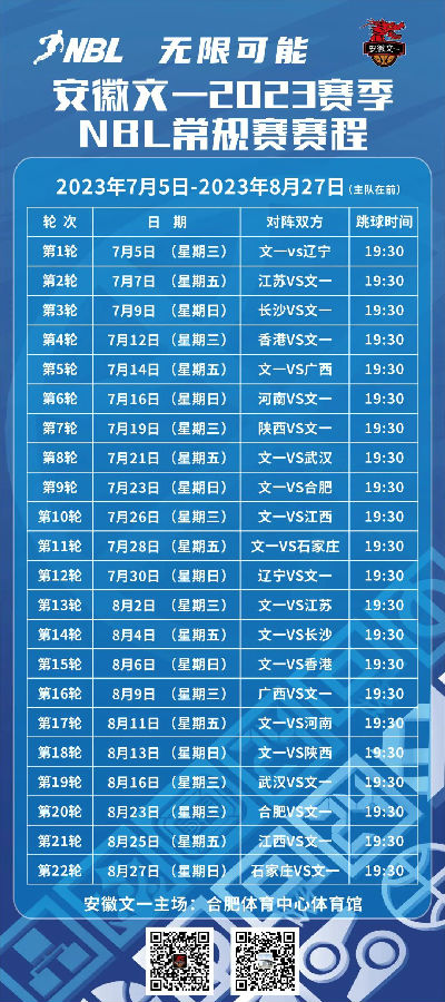 千呼万唤始出来。6月14日,2023全国男子篮球联赛新闻发布会在北京举行,联赛赛程正式出炉。安徽文一常规赛揭幕战将在7月5日进行,坐镇主场合肥体育中心体育馆,对阵辽宁益胜。