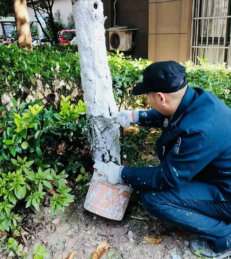 气温降低,我们在添衣保暖的同时,树木也同样需要呵护。肥东服务各项目对园区的树木进行刷白,既可防止树木受到病虫的侵害,又能保证树木来年春天生机勃勃,还为寒冷的冬日增添了一道靓丽的风景线!