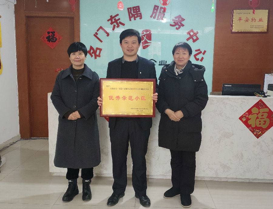 近日,文一肥东服务下辖项目名门东隅因在2024年物业服务工作中积极主动提升现场的环境,提高业主满意度,获得肥东县撮镇镇龙塘社区颁发的“优秀示范小区”称号!这一荣誉不仅是对文一服务过往工作的认可,更是对未来持续提升服务质量的激励。