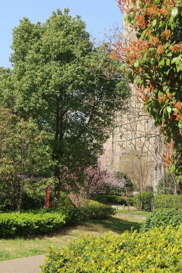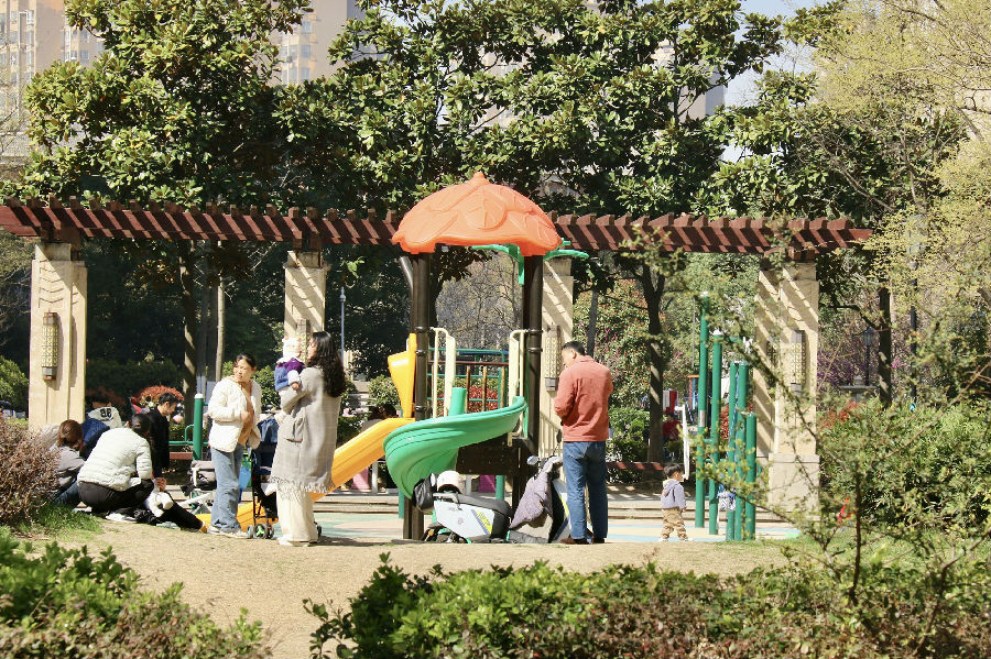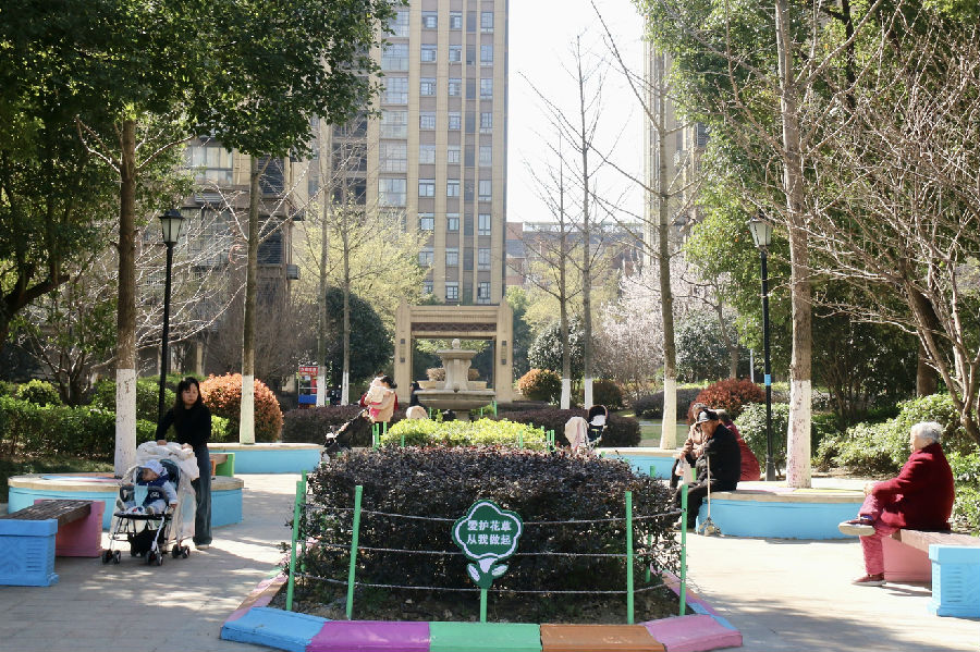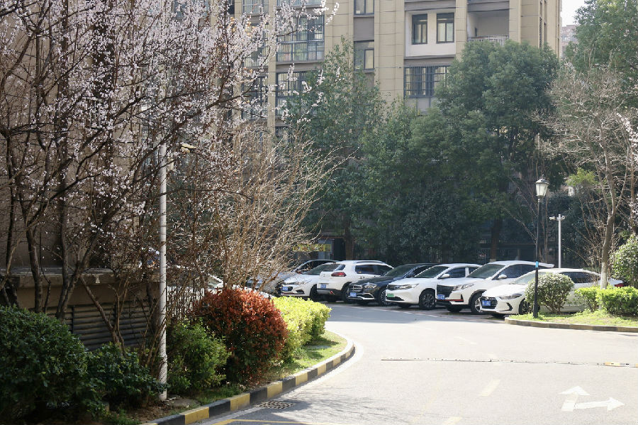 春光明媚,桃花俏枝。步入名门河畔,道路整洁,郁郁葱葱,车辆停放有序,水景静静流淌。暖阳洒在小广场上,拄着拐杖的白发老人和推着婴儿车的宝妈们三五成群地拉着家常。绿化工人蹲在路边打理花草,时不时有刚学会走路的小朋友加入其中,探索自己的世界。工作日的小区虽偶有装修和车辆的喧嚣,但到处都是有条不紊的宁静。
