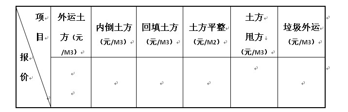 1) 土方工程报价以包干单价形式,外运土方包干价包含但不限于以下内容:场区内土石方挖土、装车外运、卸土、外运土方所需便道修理、修理边坡、清理机下余土、就地平整、现场内构筑物、原有基础拆除爆破及挖运、土方工作面内排水、降水、安全文明施工费、环保费、渣土办证手续费、弃土费、相关报批报建费(市容、城管、建管、交管、执法大队等)、措施费、管理费、利润、税金等建设工程所有相关费用。