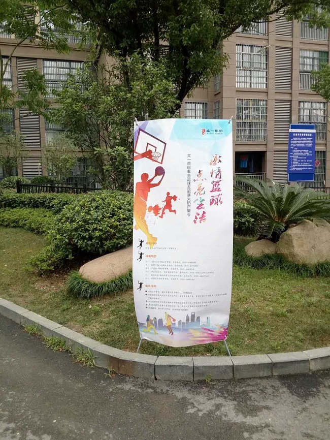 (小区内设置的业主篮球友谊赛展架)