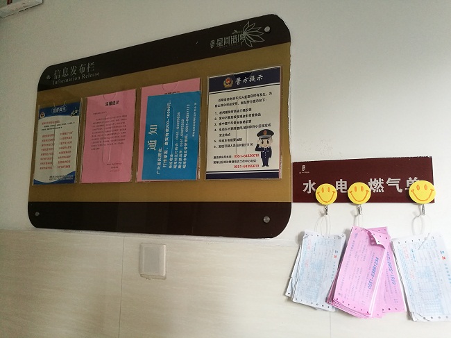 据介绍,该社区的精细服务远不止这些,为便于小区业主领取水、电、燃气缴费单,同时保持地面卫生,文一物业在净化便民信息栏的同时,将居民缴费单分类串联起来,挂在显著位置,方便居民查看、领取。