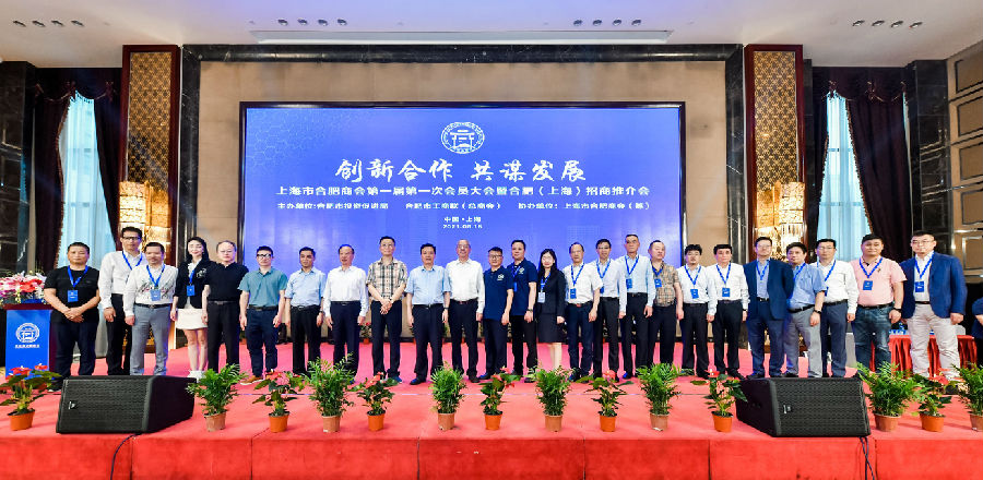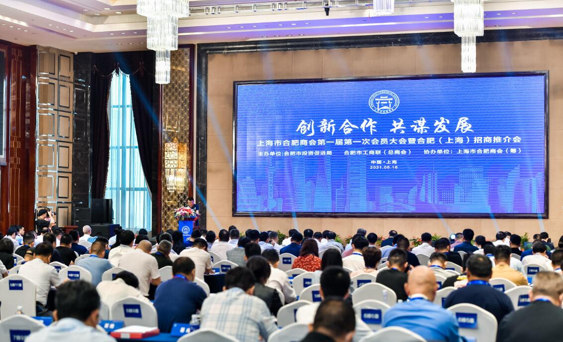 6月18日下午,上海市合肥商会第一届第一次会员大会暨合肥(上海)招商推介会在上海市闵行区绿瘦酒店隆重召开。安徽省政府驻上海办事处党组书记、主任曹哨兵,上海市人民政府合作交流办公室副主任强鹏程,安徽省政府驻上海办事处副主任方劲松,合肥市人大常委会党组成员、副主任方正杰,合肥市人民政府副市长路军,原合肥市政协主席、党组书记、合肥市慈善协会会长董昭礼等领导,以及上海市安徽商会等兄弟商会、社会各界友好人士、商会会员企业代表、安徽卫视等十余家知名媒体等近300人出席会议。本次大会由安徽卫视著名主持人任良韵主持。