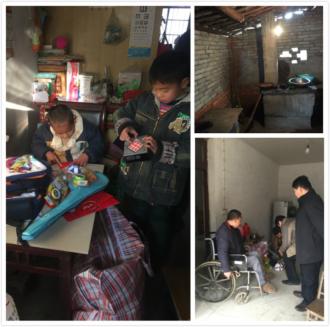 为响应集团“砖瓦精神 贡献社会”的使命号召, 2016年春节前夕,文一集团六安置业有限公司在总经理赵之千的带领下组织了爱心善款募集工作,并置办了米、油、学习用品、儿童玩具等爱心物资。2月5日,在残疾人康复中心工作人员的指引下慰问组一行将爱心物资及慰问金先后送到六安市霍山县和金寨县十多个残障家庭手中,希望能让这些家庭感受到社会大家庭的温暖。