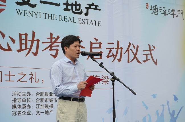 合肥市城管局宣教法规处处长李大勇与江淮晨报社副总编辑徐经胜则在致辞中对文一集团爱心助考活动给予了高度肯定,“作为一项公益爱心活动,‘文一助考季’的公益力量,不仅为高考学子送去关爱,也传播了爱的力量”。