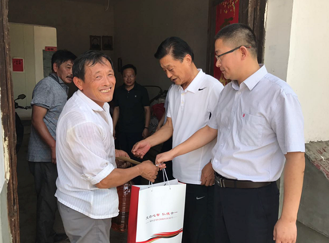 7月16日,集团党委书记兼纪委书记韦存华带领集团党群办一行,在肥东县工商联负责同志的陪同下,冒着高温酷暑,前往肥东县梁园镇护城社区,看望慰问20户贫困户,为每户送去500元慰问金及大米、食用油、日用品等物资。
