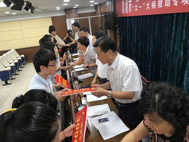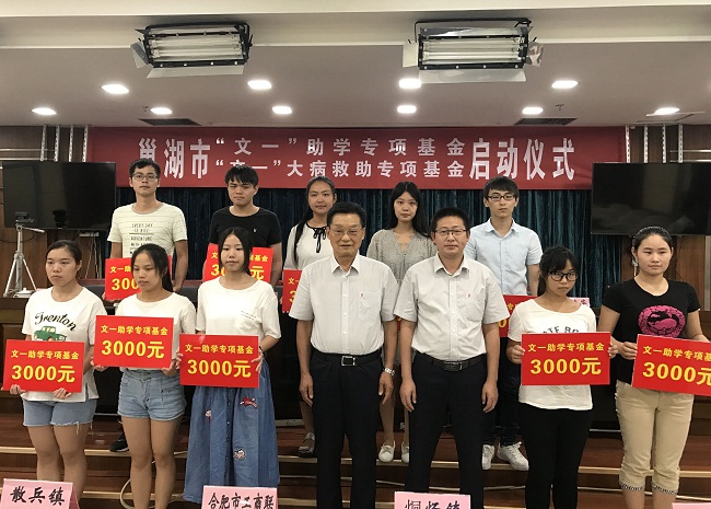 为促进巢湖市工商联“百企帮百村”精准扶贫工作再上新台阶,切实减轻贫困家庭的经济负担,“文一”大病救助专项基金及“文一”助学专项基金启动仪式于8月22日在巢湖市行政会务中心举行,为家庭困难学生现场发放专项助学金。