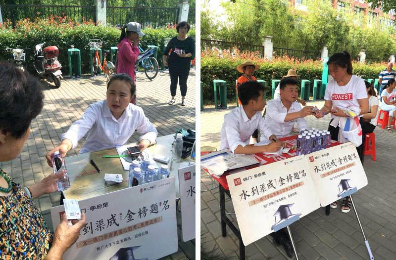 6月7日、8日考试期间,文一·锦门学府里分别在颍上县一中和县五中支起数个爱心服务站,并派出工作人员奔赴各考点,为陪考的家长和考生送上精心准备的矿泉水,高考两天内共计送出约3000瓶,为考生及家长尽一份绵薄之力。