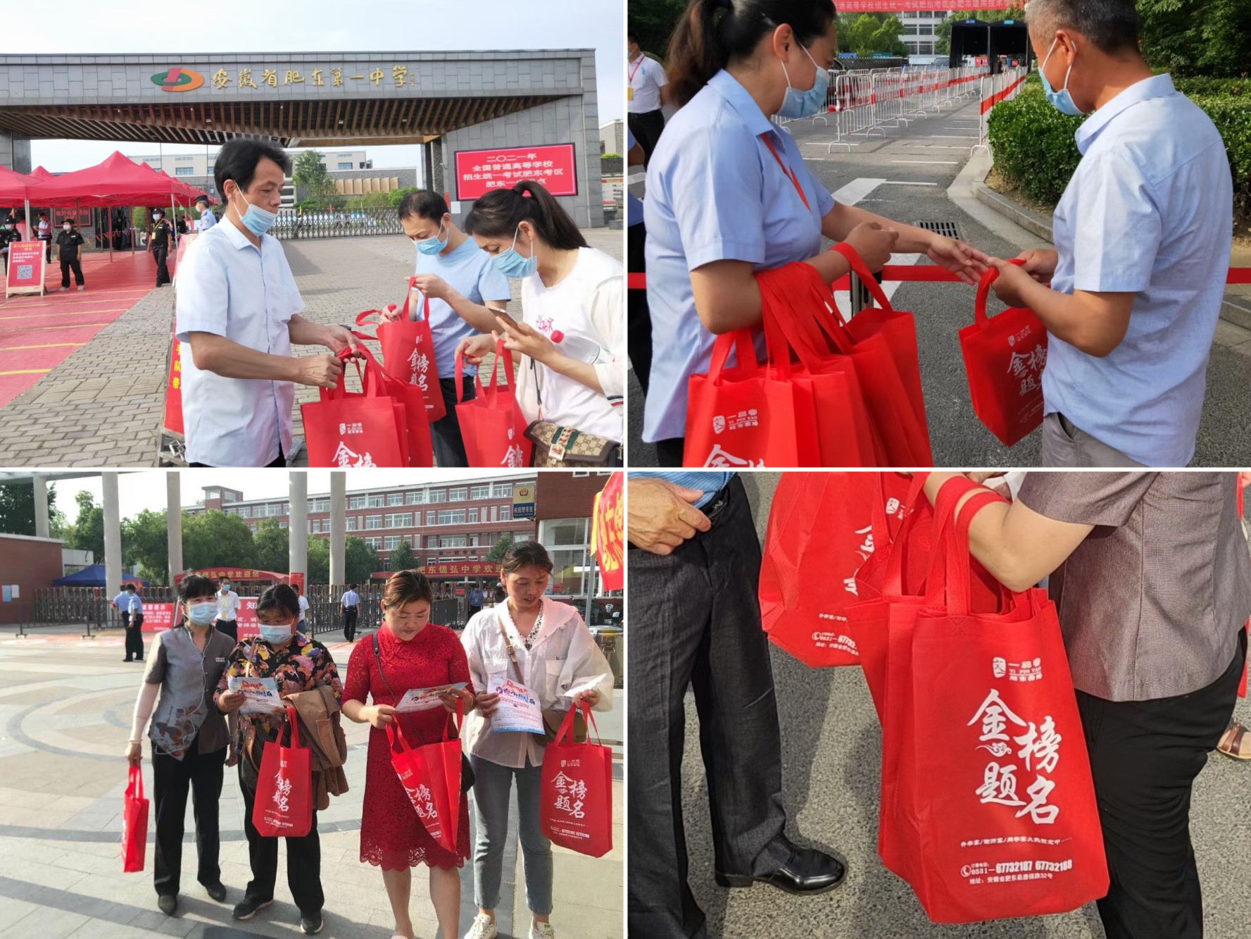 6月7日,又逢一年高考时,文一酒店集团肥东三店肥东县七个考点外摆设了高考爱心服务点,一品宴铜陵路店在5中、38中、合肥工业大学附属中学等考点附近,免费为考生和考生家长提供矿泉书、扇子和环保袋等。